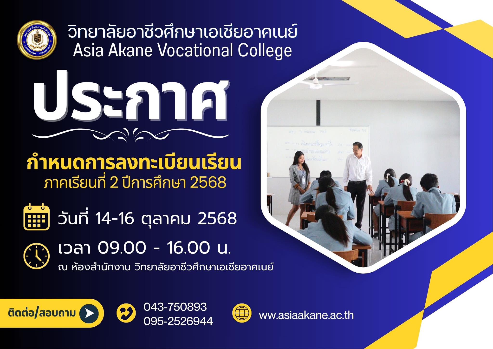 กำหนดการลงทะเบียนเรียนภาคเรียนที่ 2/2568